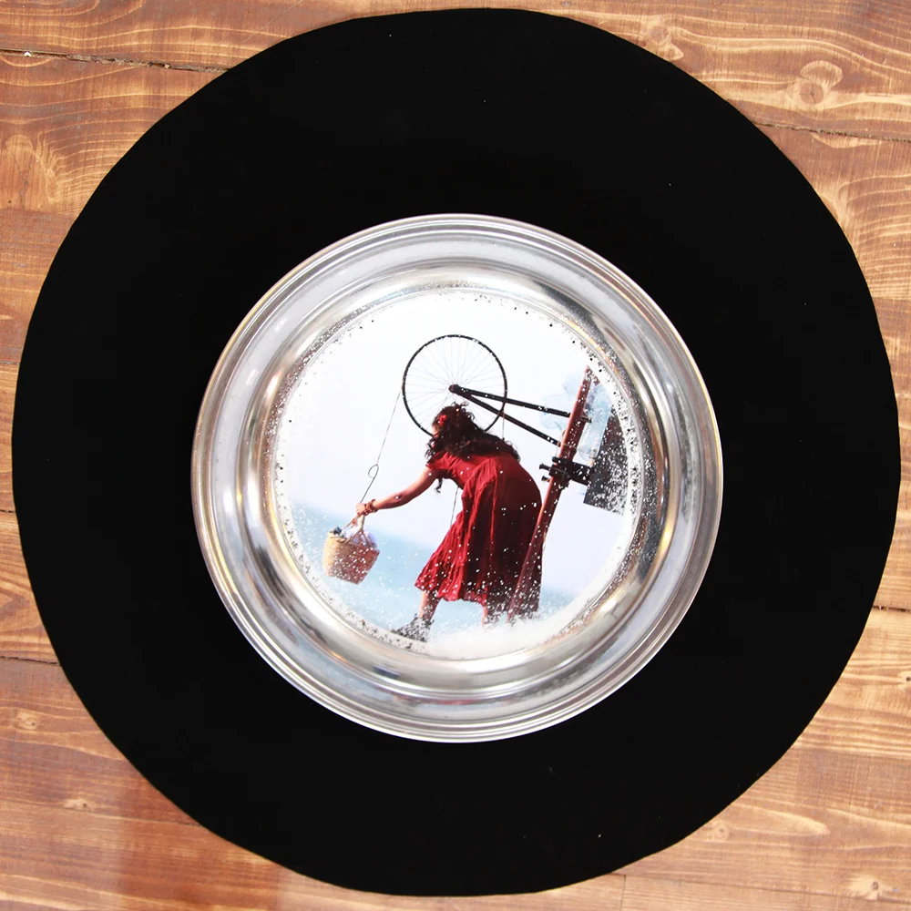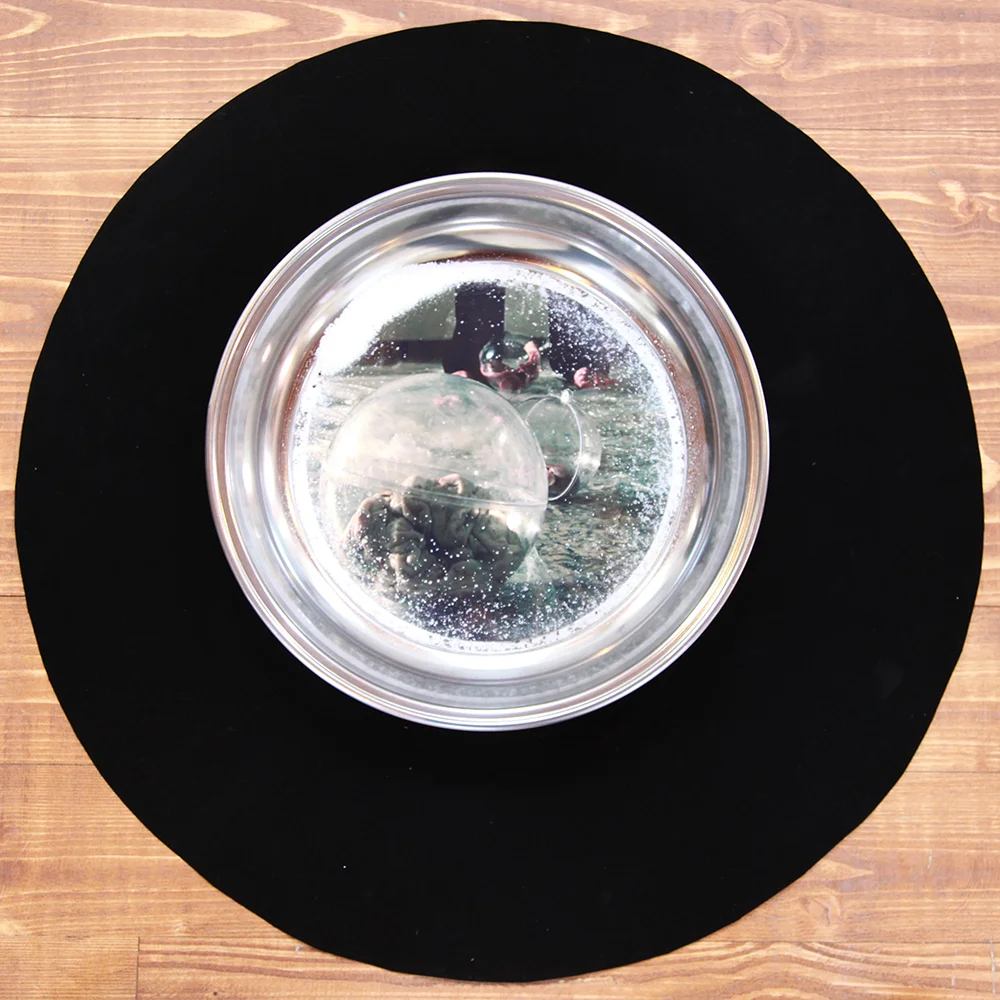 The National Section of Lebanon is an engaging exhibition landscape. It features a grid of 24 colanders that carry photographs of theatre and performance design works done by professionals in Lebanon. The images are covered with salt, a vital preservative mineral that gives root to the section. Incense, another organic material, burns in a strainer, elevating the whole pavilion, in communion with the exhibition site: Prague Crossroads - Saint Anne's Church. The interaction of the visitor within the responsive landscape alters the layers of salt, creating oriental patterns, stamped on circular black velvet.