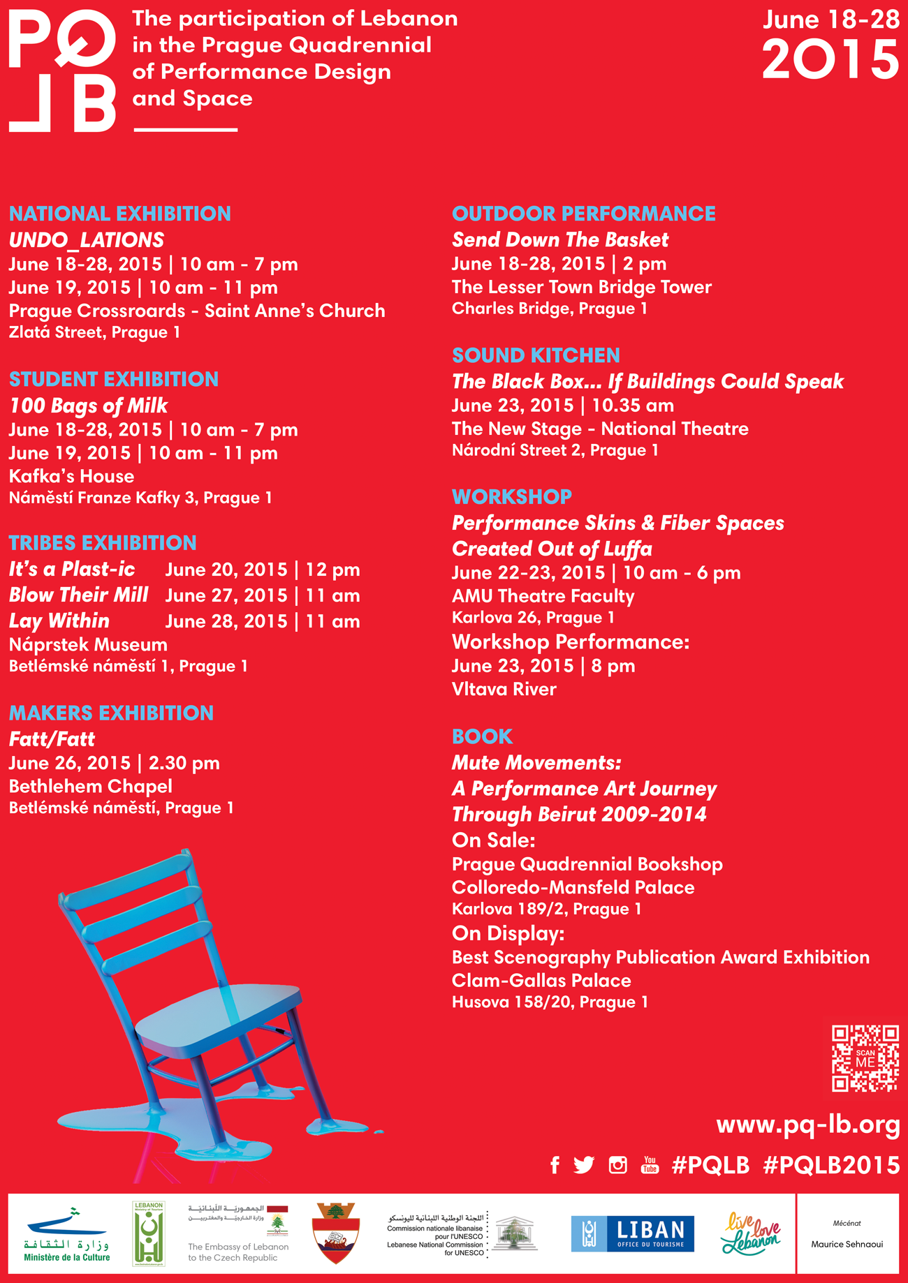 Reception in honour of the participation of Lebanon in the thirteenth edition of the Prague Quadrennial of Performance Design and Space - 6 pm - 8 pm - Residence of the Lebanese Embassy to the Czech Republic.